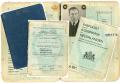 Zeitdokumente | zwei Fototaschen (8,5 x 12,5 cm) , Arbeitsbuch (11 x 15 cm), Herstellerschild - Geldschrank Fabrik ( Metall, 16 x 9 cm) | 1940 um | anzeigen | ||